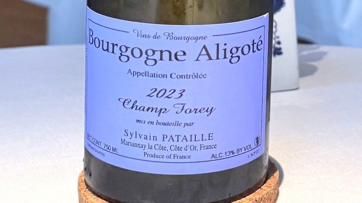 The first wine of the pairing was the Bourgogne Aligoté Champ Forey 2023 by Domaine Pataille. Aligoté is the “other” white grape variety from Burgundy that is gaining popularity because it retains its acidity despite climate change. That high acidity requires techniques like sur lie aging to achieve a balanced wine, and that is exactly what was done here.