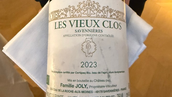 The third wine was the 2023 Savennières “Les Vieux Clos” by Domaine Joly, a Chenin Blanc from the Loire region in France. This is a complex wine featuring the typical aromas of the variety, such as bruised apple, with significant concentration and texture. It was a great pairing for the langoustine with Masala, Markoesa, and lovage.