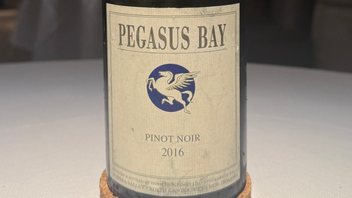 The wine pairing continued with a 2016 Pegasus Bay Pinot Noir from the Waipara Valley in North Canterbury, on the South Island of New Zealand. This wine was crafted using 30% whole bunches and aged for 18 months in French oak barriques, 40% of which were new. Beautifully matured and at its peak drinking window, it offered a complex array of primary, secondary, and tertiary aromas with velvety tannins.