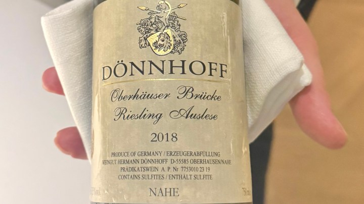 Martijn loves dessert, so he was in luck with two courses, each accompanied by its own dessert wine. The first was a 2018 Oberhäuser Brücke Riesling Auslese by Dönnhoff from the Nahe region in Germany. This was a very well-balanced Riesling featuring that classic, sought-after aroma of petrol.