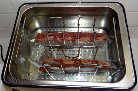 - Adding liquid to the sous-vide bag by using a ziploc bag and the water deplacement method to evacuate most of the air