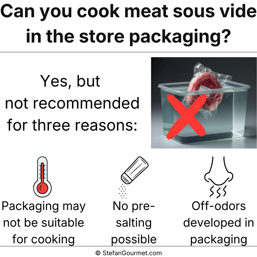 When you buy meat, it often comes in vacuum-sealed packaging, making it tempting to put it straight into the sous vide bath. While this seems efficient, I do not recommend it for three important reasons.