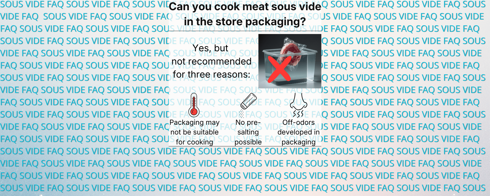 - The packaging may not be suitable for cooking for several reasons. The plastic used in retail packaging is often not heat-resistant, which creates a risk of chemicals leaching into your food. Additionally, the plastic can break down, leak, or even fuse to the meat, and the original seals are prone to failure under heat. The adhesives used for labels are also rarely heat-stable and can dissolve into the water, risking a clogged immersion circulator. Finally, the packaging often contains a moisture-absorbing pad. This pad will soak up the juices released by the meat during cooking, which not only affects the texture but can also impart a chemical or ‘off’ taste to your food.