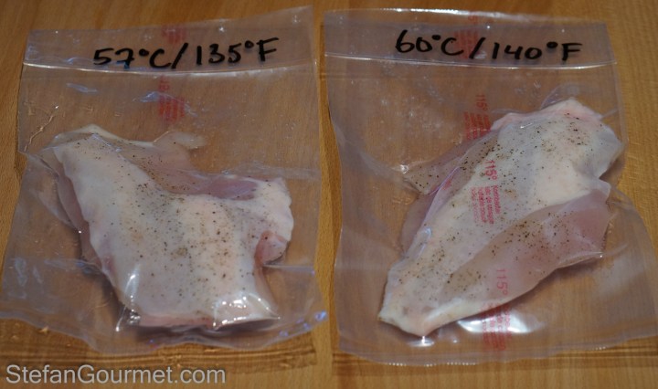 Next to beef short ribs, pork belly is a meat that is often mentioned on eGullet as a favorite for sous-vide. I usually don’t eat pork belly, but I thought I’d give it a try and was not disappointed! Modernist Cuisine gives 60C/140F and 65C/149F, both for 72 hours, as ‘best bets’ for pork belly sous-vide. I tried both, and liked 60C/140F much better because it is as tender as 65C/149F, but much more juicy (the 65C/149F was really dry). Please note that at this temperature the fat doesn’t render, so you end up with layers of tender meat and … Continue reading Pork Belly sous-vide