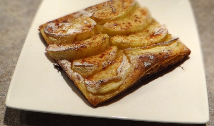 Since a lot of my supplies and equipment are stored in the garage and cannot be reached easily and it’s always difficult to cook in a strange kitchen, for dessert I resorted to this ‘cheat’ to make something that is like tarte tatin, but a lot simpler to make.