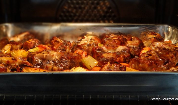 All regions of Italy have their own traditional dishes, referred to as piatti tipici. I like to cook my way through Italy by trying piatti tipici from different regions. Coda alla Vaccinara is a typical dish from the cucina povera (poor man’s kitchen) of Rome (Lazio). Oxtail is part of what is called the quinto quarto (the fifth quarter), the less desirable parts of an animal that remain when all the nice parts have been taken. As often with traditional Italian dishes, there are many different versions. I made an elaborate version with raisins, pine nuts, and cocoa powder in the sauce. The sauce can be served over penne rigate or rigatoni, which is called Rigatoni al Sugo di Coda. Continue reading “Coda alla Vaccinara (Oxtail Stewed in Tomato Sauce)”