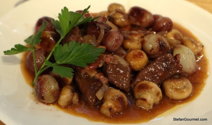 Although I purchased my pressure cooker for making stocks, I thought it would be nice to try making a pressure-cooked stew as well. Pressure cookers are known as “fast cookers” (or actually “fast cooking pan”, “snelkookpan”) in Dutch, and in this case it is true because stewing beef in a pressure cooker only takes 20 minutes instead of 3 hours. Stating it like that is cheating a bit, because after those 20 minutes you need to wait for about half an hour for the pressure to go down. But still, it still means that you only have to start cooking 75 minutes or so before you’re having boeuf bourguignon and that is kind of nice. Continue reading “Pressure-Cooked Boeuf Bourguignon”