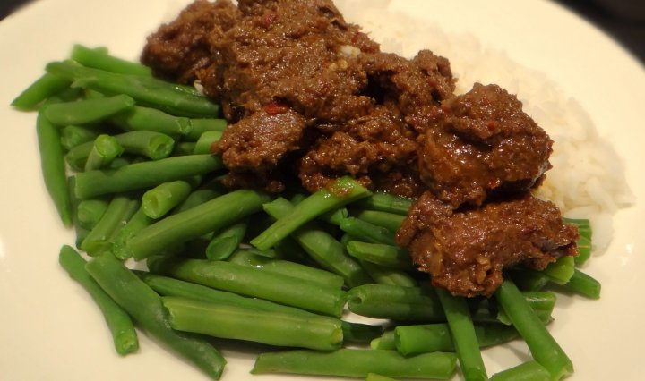 Rendang Daging is beef stewed in coconut milk with spices until all of the coconut milk has been reduced and the beef is tender. The stew becomes more and more dry, and turns from a light color to a dark color because of the caramelization that will occur. Rendang is traditionally served at festive occasions. The cooking method was developed to preserve meat in a tropical climate before refrigerators were available. Now rendang is still prepared because it is loaded with flavor. Rendang is so popular that it is regarded the national dish of Indonesia. Continue reading “Rendang Daging (Indonesian Beef Stew)”