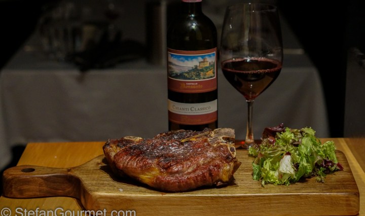 The first thing that came to mind was a dish that is certainly fit for a board: Bistecca alla Fiorentina. This is a T-bone steak as it is served in the Tuscan city of Florence. I have prepared the Bistecca alla Fiorentina in the traditional way that doesn’t take into account the latest ideas on how to prepare a steak but is delicious anyway. A true Bistecca alla Fiorentina should be of a special Tuscan breed of cattle called Chianina. It should be about two fingers thick (4 cm or 1.5 inches, about 750 grams/26 oz). It should be cooked over a charcoal fire and otherwise as little as possible should be done to it: only salt and freshly ground black pepper should be added, strictly after cooking. Such a simple preparation with such a lot of flavor is certainly fit for a board of which Conor is the chairman.