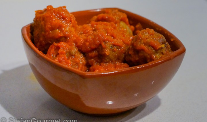 Tapas are in Spain simply bar food, but outside of Spain have become very famous. In Spain every bar (with the word “bar” meaning a neighborhood hangout that is open all day and night and where you can also buy … Continue reading Albóndigas (Spanish Meatballs in Tomato Sauce)
