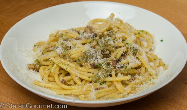 I don’t have many cookery books (at least not compared to many of you), and I do not use the ones that I do have very often. There is one exception, and that is my collection of Biba Caggiano books. By now I’ve probably cooked the majority of recipes in there, but there are still some that I haven’t tried. This recipe for fast stuffed veal bundles from “Modern Italian Cooking”, the first of her books that I owned and the one that got me started on Italian cooking, is one that I only recently tried for the first time. Perhaps because I thought it was too similar to Saltimbocca alla Romana, which is on the next page and one of my favorites. The main differences are that saltimbocca are never rolled up but always served flat, and that these stuffed veal bundles are cooked in a tomato sauce.  They also take a bit longer to cook than saltimbocca. Continue reading “Stuffed Veal Bundles (Involtini di Vitello)”