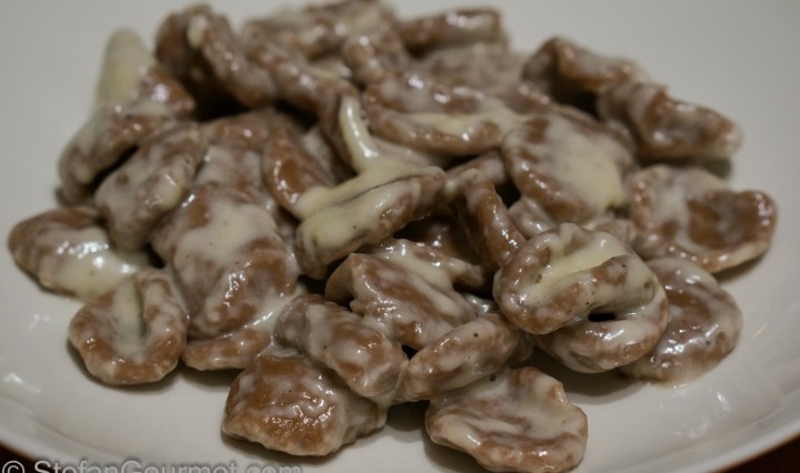 Simple dishes can be surprisingly good. Many traditional Italian recipes can be linked to the local circumstances. Liguria is a mountainous strip of land along the Mediterranean coast without any room for growing wheat. But there are lots of chestnut … Continue reading Chestnut Tagliatelle with Basil Pesto (Tagliatelle di Castagne al Pesto)