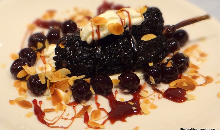 Guess whose idea it was to use chile peppers for dessert? Who else but Richard McGary! I found his recipe for Cinnamon Candied Chile Relleno with Red Wine Chocolate Sauce very intriguing, and knew I had to try something similar. I thought it was very appropriate to use the ancho chiles that Richard had sent me to prepare this very unusual but very tasty dessert. The base of the dessert is a chile pepper stuffed with chocolate mousse. Richard soaks the chiles in cinnamon syrup and serves them with pecans and red wine chocolate sauce. I made my own version with an Italian twist by pairing the chocolate stuffed chile with tart amarena cherries and almonds. It was really good, and definitely something I’ll make again. Thanks Richard! Continue reading “Ancho Chile with Chocolate Mousse and Amarena Cherries”