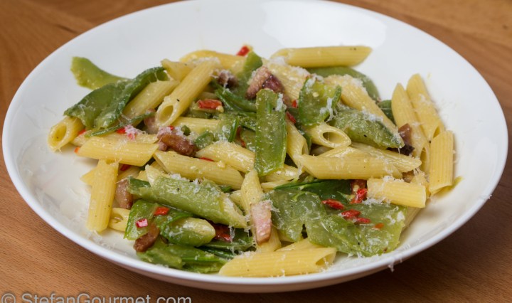 One thing I don’t like about fava beans is all the waste. The actual beans are only about 20-25% of the gross weight, and that is even before double-shelling them (i.e. remove the light-colored bitter membrane around the green tender … Continue reading Pasta with Fava Bean Pods (Pasta con Baccelli di Fave)