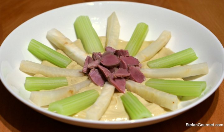 Georges Pralus of Restaurant Troisgros in Roanne, France, discovered that foie gras cooked sous-vide kept its original appearance, did not lose excess amounts of fat and had better texture. This was a major step in the development of sous-vide techniques for the restaurant and home kitchens. Although I’ve been cooking sous-vide, I had not cooked foie gras sous-vide yet. Since it was such a breakthrough dish, I felt I had to give it a try. The combination of foie gras with the botrytis dessert wine sauternes is famous, and since sauternes is also good with roquefort and roquefort is good … Continue reading Foie Gras Sous-vide with Sauternes, Beetroot and Roquefort