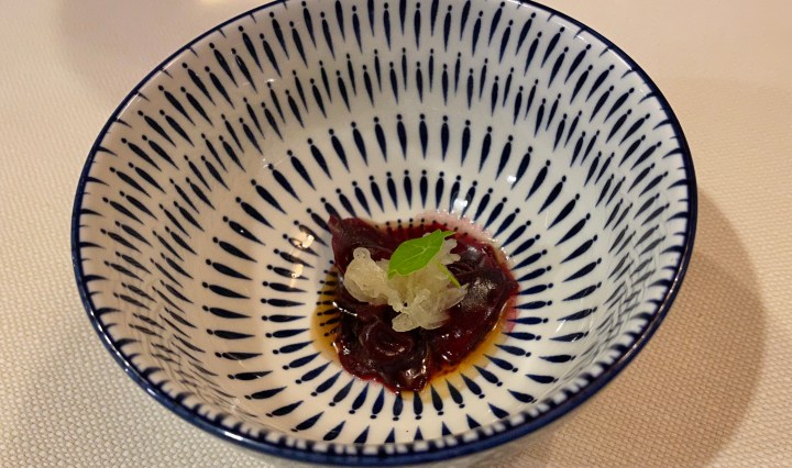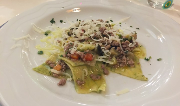 As part of our wine tour through Friuli, we had dinner at La Subida Trattoria al Cacciatore. The chef’s specialty is girini—his interpretation of a traditional local dish made by letting pasta batter drip into boiling water to form fresh pasta. What … Continue reading Girini (Crumbles of Dropped Pasta) with Rabbit, Samphire, and Cherry Tomatoes