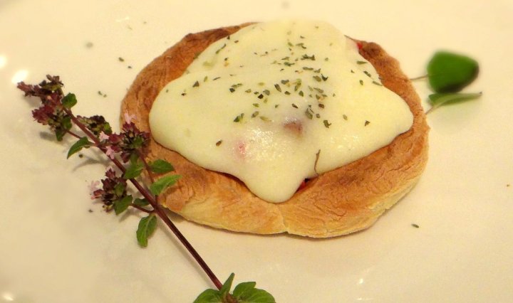 This is what I wrote about this dish in my review of our dinner at La Madia: “We were thoroughly fooled by this pizza, because we were wondering how we were going to survive 8 courses if they were all going to be this big. It turned out to be very light actually. What looks like melted mozzarella is actually potato mousse. The crust was only a very crispy very thin round of dough, and underneath the ‘cheese’ there was lovely cod smoked on pine wood and some semi-dried tomato. Great flavors and wonderful presentation. 10/10”