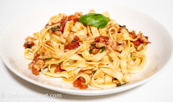 All the recipes I could find for lobster risotto did not use the lobster shells to make lobster stock to use for the risotto. They were simply a plain risotto with a lobster served on top. And so I decided to create my own recipe for lobster risotto and it turned out spectacular! I decided to cook the lobster tail sous-vide because that will keep it amazingly tender, but if you don’t have sous-vide equipment you can simply boil the lobster tail as usual and still obtain a wonderful dish. Because live lobsters are not a cheap ingredient this is something for a special occasion or a dinner party where you are looking to impress your guests. This risotto is served with the lobster tail on top, delicious lobster meat mixed in with the rice that has a wonderful lobster flavor from the stock, as well as peas, tomato, and yellow bell pepper for lovely colors. This dish has a nice contrast between the creamy rice and crunchy vegetables. Continue reading “Lobster Risotto Like No Other”