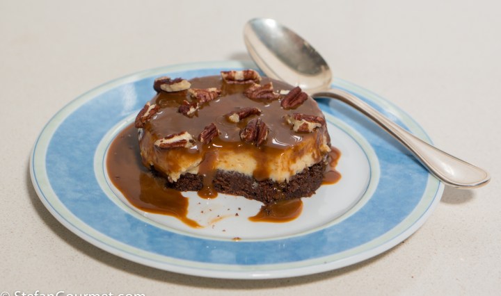 Elia suggested this recipe from Pati Jinich as the dessert for our Mexican feast. It is called “impossible” chocoflan, because the two batters look like a mess when you put them into the oven, but when the flan comes out, … Continue reading Chocolate and Vanilla Flan with Pecans (Chocoflan Imposible)