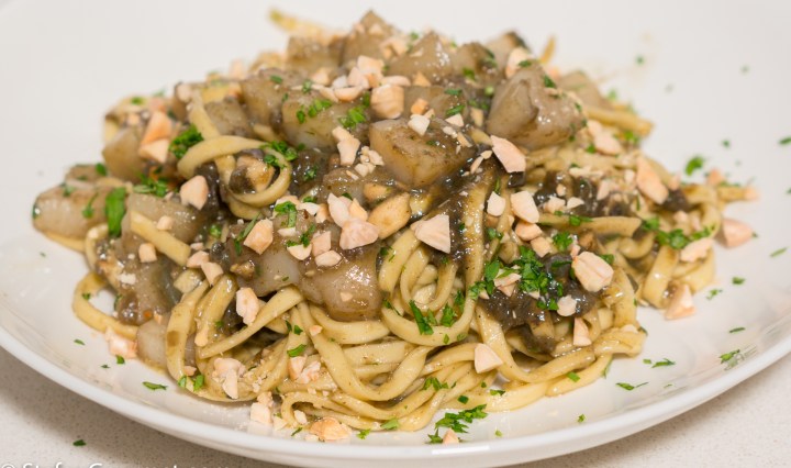 This is an elegant seafood pasta that I like to prepare. As always, the quality of the ingredients means a great deal. I used fresh scampi, but you could also substitute with jumbo shrimp as long as they are ‘wild caught’ and have the heads and shells to make some wonderful shrimp stock. Frozen scampi or shrimp are also fine, but the scallops must be fresh (since frozen scallops release too much water when you try to sauté them). The delicate flavors of scallops and scampi or shrimp go well with fresh tomatoes, zucchini and basil and just a tiny … Continue reading Linguine with Scampi, Scallops, Zucchini and fresh Tomatoes