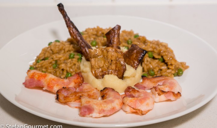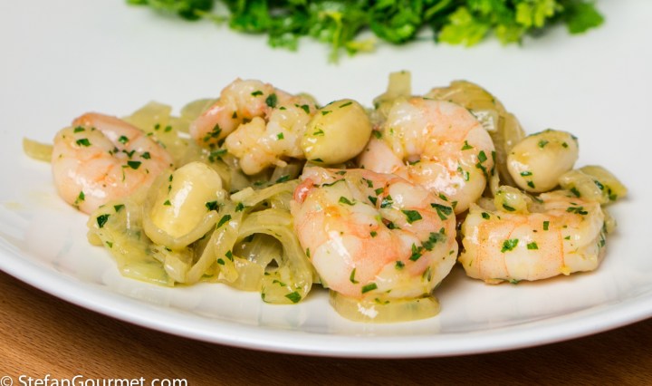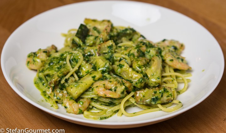 My friend Melvin had enjoyed Spaghetti V.G.P. at a restaurant in Sicily, and suggested we make prepare this. Pasta with vongole, gamberi (shrimp) and pistachios is quite common in Sicilian restaurants; it uses local ingredients and is a great flavor … Continue reading Spaghetti V.G.P. (Spaghetti with Vongole, Shrimp, and Pistachios)