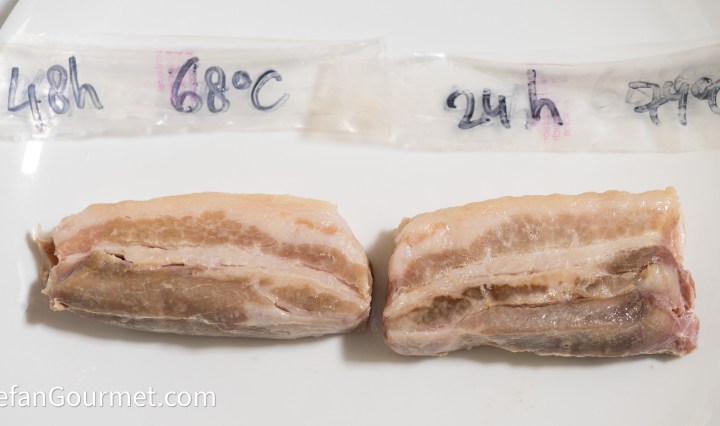 Four years ago I performed an experiment in which I compared 8 different time and temperature combinations for cooking pork belly sous vide. The result was that my preferred options were 48 hours at 57C/135F and 24 hours at 74C/165F. … Continue reading Pork Belly Sous Vide Time and Temperature Experiment, the Sequel
