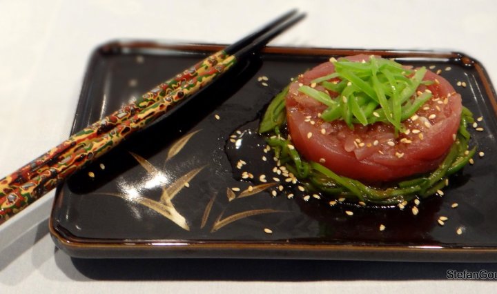 When I was on the Albert Cuyp market I saw some nice tuna and thought it was time I would give ‘poke’ a try. Poke is a Hawaiian dish that I had never heard of before, despite having been to Hawaii for a week two years ago. I had noticed it on Richard McGary’s blog REMCooks.com before, but only when I saw the photo of the Baby Lady smugly enjoying poke I knew I really had to try this 🙂 I was not disappointed, as we both loved it and I will definitely make poke again.